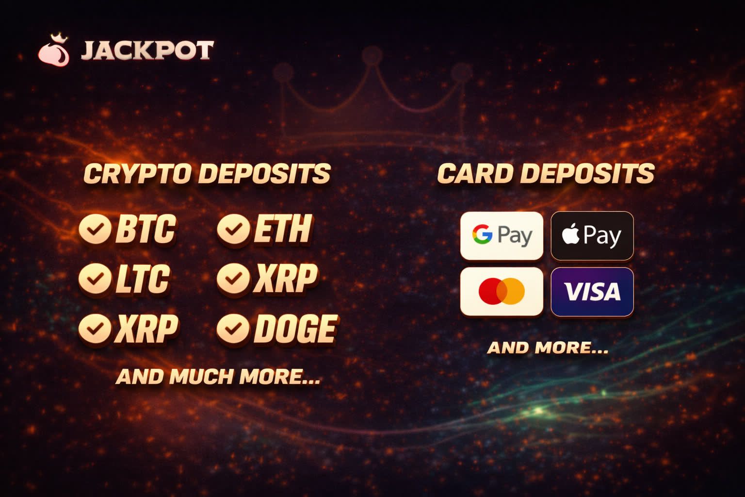 | Crypto Deposit | Jackpot Wallet | BTC, ETH, USDT, USDC, DOGE, TRX, LTC, SOL, BNB, XRP and more | ~1–5 minutes |